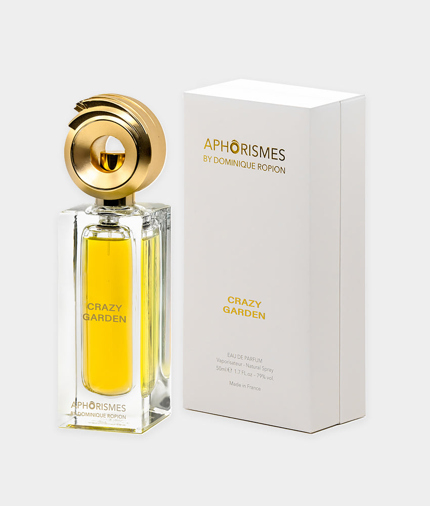 Crazy Garden is the imprint of a fresh perspective on green florals. Here, the citrus notes burst forth immediately, lemon and mandarin essences combined with agrestic notes and blackcurrant bud, creating a lively effect with a singular, emancipated personality… A fresh floral heart of jasmine, lily of the valley, and rose weaves its way in, enhanced by a joyous tuberose wrapped in milky nuances. Like a painting by Douanier Rousseau, set against the fertile terrain of his imagination, this floral explosion evokes a dreamlike Eden, where patchouli essence, oakmoss absolute, and labdanum blend into a grey amber-vanilla accord.