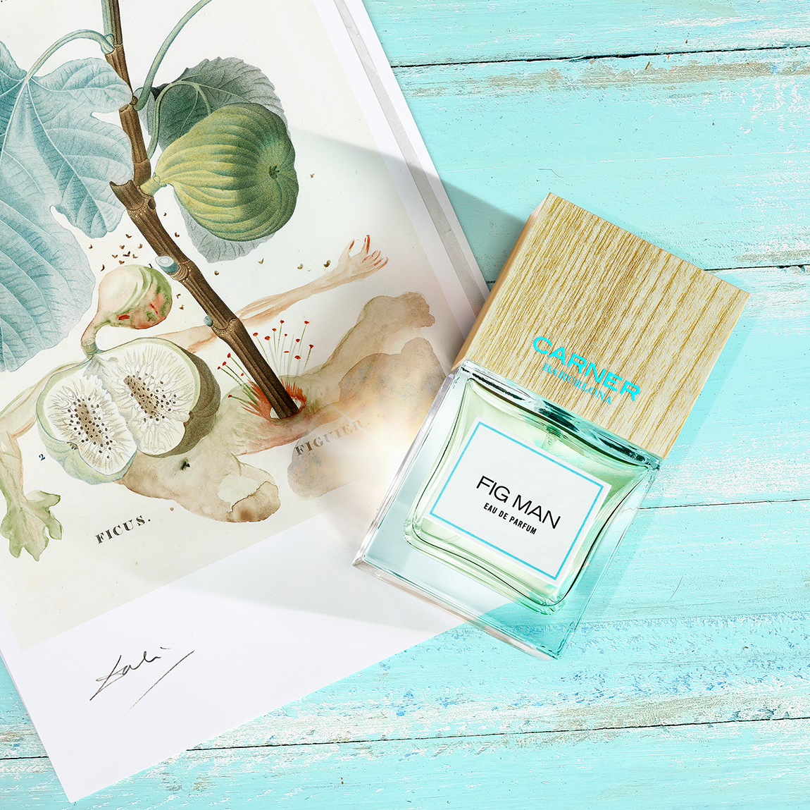 Fig Man is part of Carner Barcelona's Mediterranean Collection: four fresh and bright perfumes that evoke the joyful Mediterranean attitude. Inspired by the wondrous illustration Homme Figuier by Dali; Fig Man is a fresh and beautifully imaginative fragrance that fantasies with the acclaimed Mediterranean fig tree. It takes seemingly classic earthy notes and subverts them into a fanciful surreal fig theme mixed with salt, cool spices and dry woods. Every bottle is adorned with a handcrafted wooden cap that is sustainably sourced and every perfume box has its own specially engraved message on the inside of the panel.