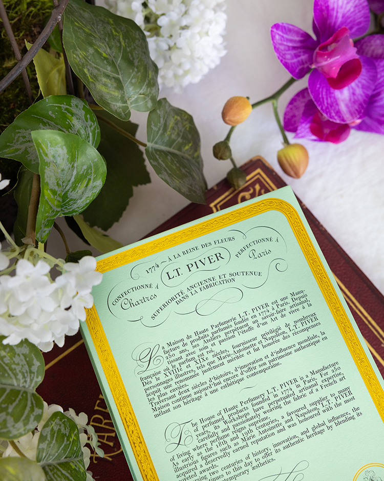 L.T. Piver has been the epitome of Parisian chic for over 250 years. From the court of Louis XVI to the modern day, this distinguished House has preserved the art of the Master Perfumer. By hand-selecting the finest raw materials and pairing them with the skill of time-honoured artisans, L.T. Piver creates fragrances that are true expressions of the French Art de Vivre.