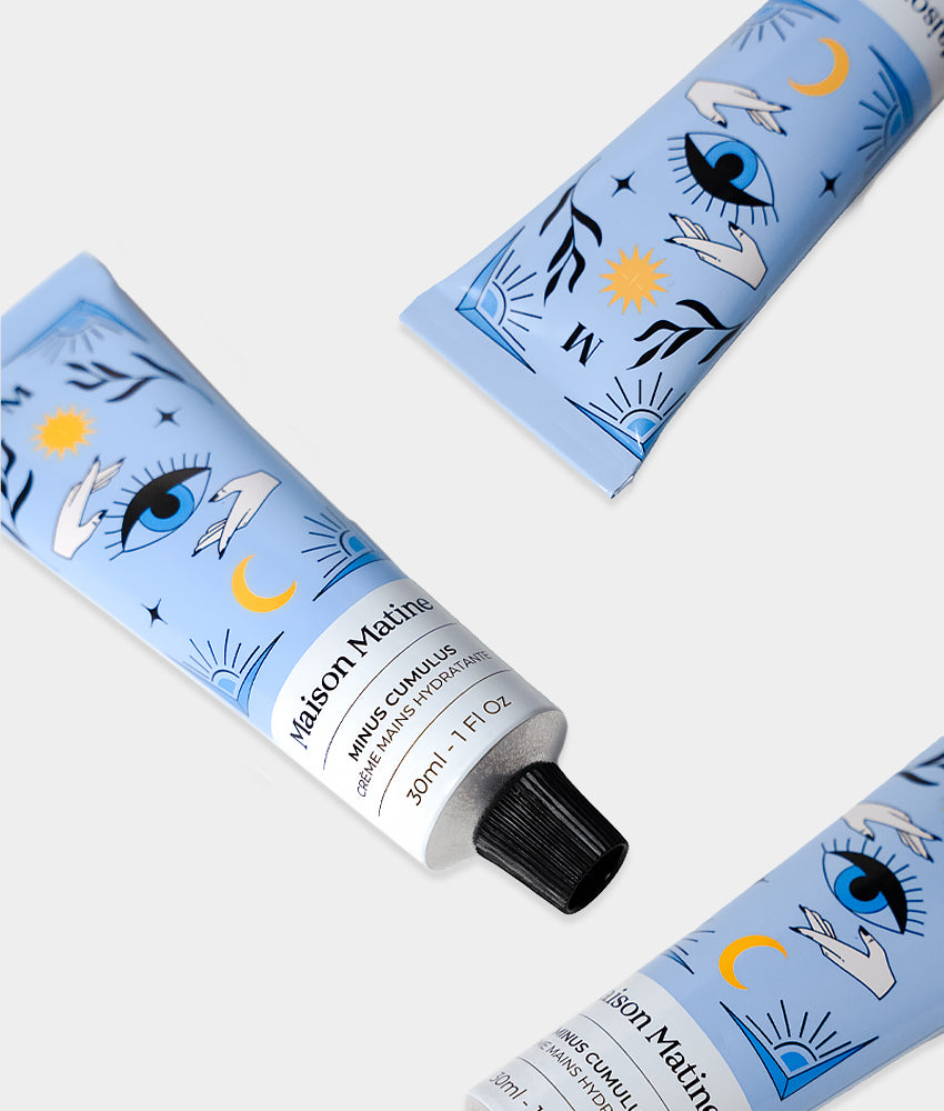 Maison Matine’s latest venture takes us into the world of hand creams!! These light and moisturising hand creams are made with coconut oil and aloe vera and to stay in line with the brand ethos, the quirky packaging is made of recyclable aluminium. Minus Cumulus is inspired by the fragrance Avant L'Orage. This woody, floral scent has notes of pear, sandalwood and vanilla. THE perfect size for your handbag, for travelling or for gifting.