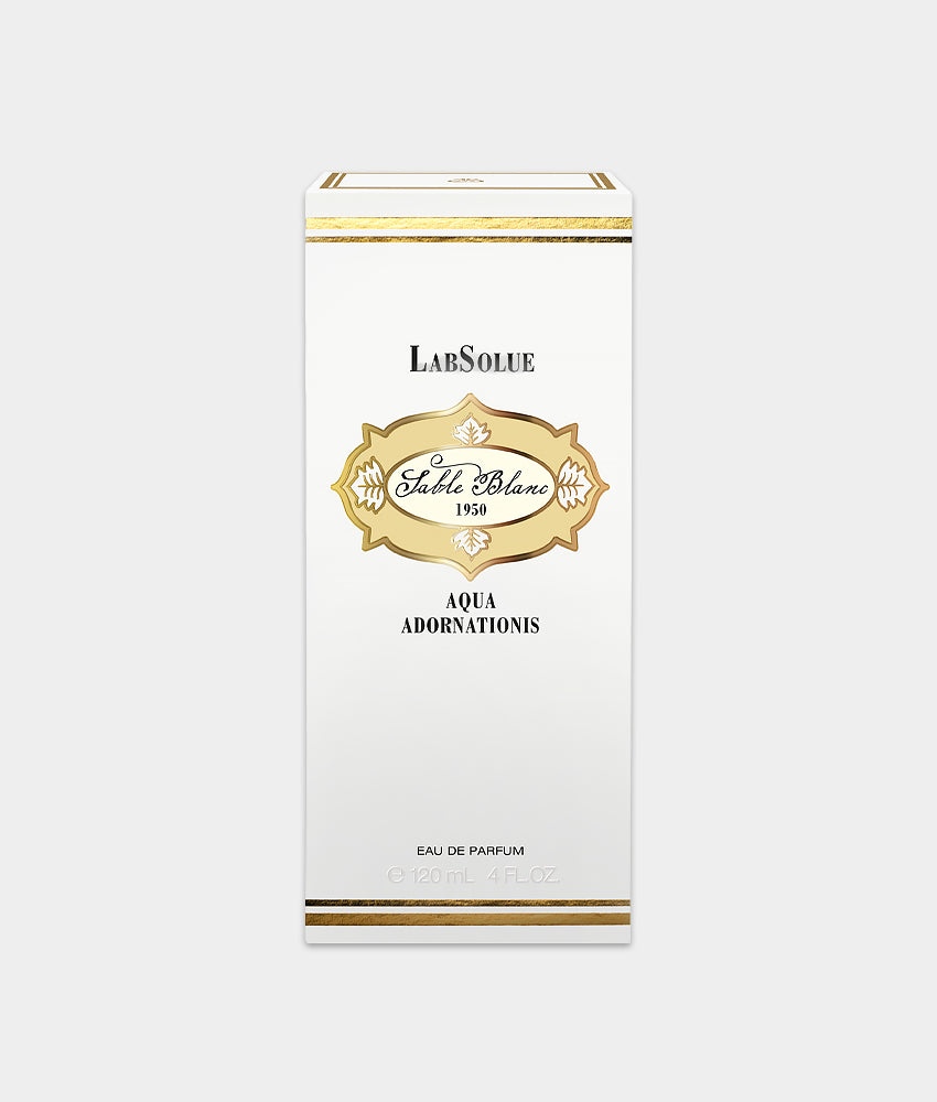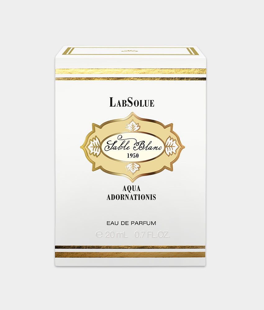 Mother Nature at her prime, she becomes the muse, adorn the beauty of sunkissed white sands. A hypnotic synthesis of frangipani buds, jasmine and rose, united with the sensuality of Vanilla Tahitensis. Worship Nature and her creations with Aqua Adornationis Sable Blanc 1950 by LabSolue.