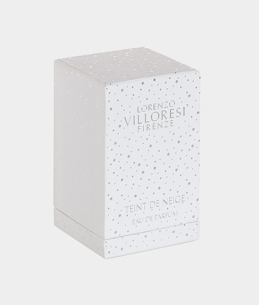 Teint de Neige, ‘the colour of snow’, the delicate rosy hue of a powdered face. The unmistakeable scent of perfumed powders, the perfume of talc, a soft, gentle, enveloping fragrance. An aroma delicately permeated by the richness of natural extracts from precious rose, jasmine and ylang ylang to evoke the delicate beauty and femininity of the Belle Epoque.